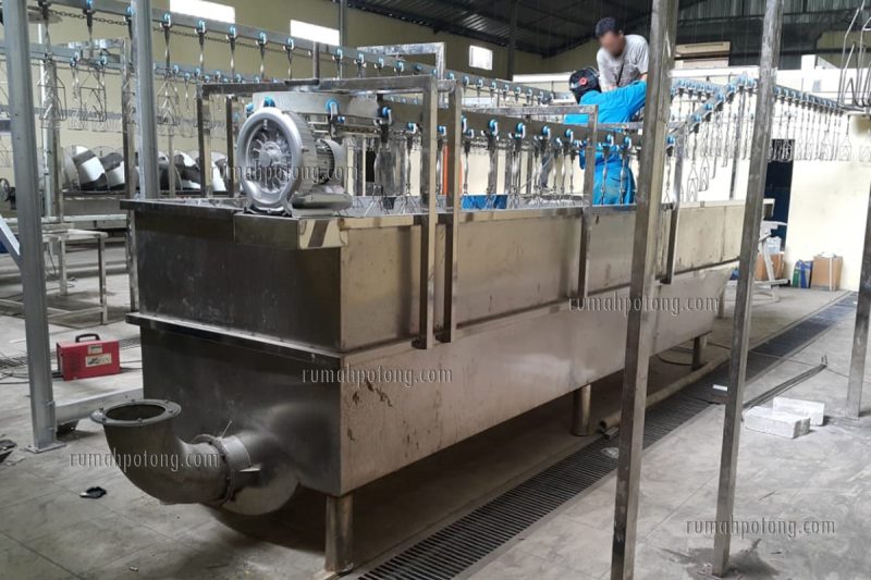 Sistem Penyaringan Udara dan Pengolahan Limbah Cair: Untuk menjaga lingkungan kerja yang aman dan sesuai dengan peraturan, peralatan ini digunakan untuk mengelola limbah cair dan mengontrol pencemaran udara dari proses pemotongan hewan.